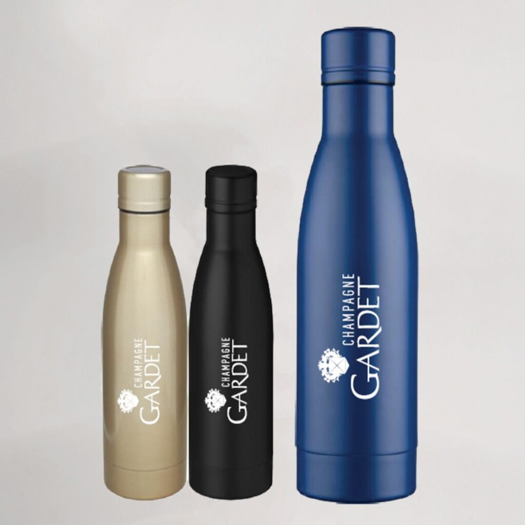 Finies les bouteilles en plastique à usage unique chez Champagne Gardet ! Toute l’équipe se sert maintenant de sa propre Gourde Gardet. Et nous vous proposons de faire de même ! Elle est facile à transporter et vous pouvez garder vos boissons préférées au frais comme au chaud.
