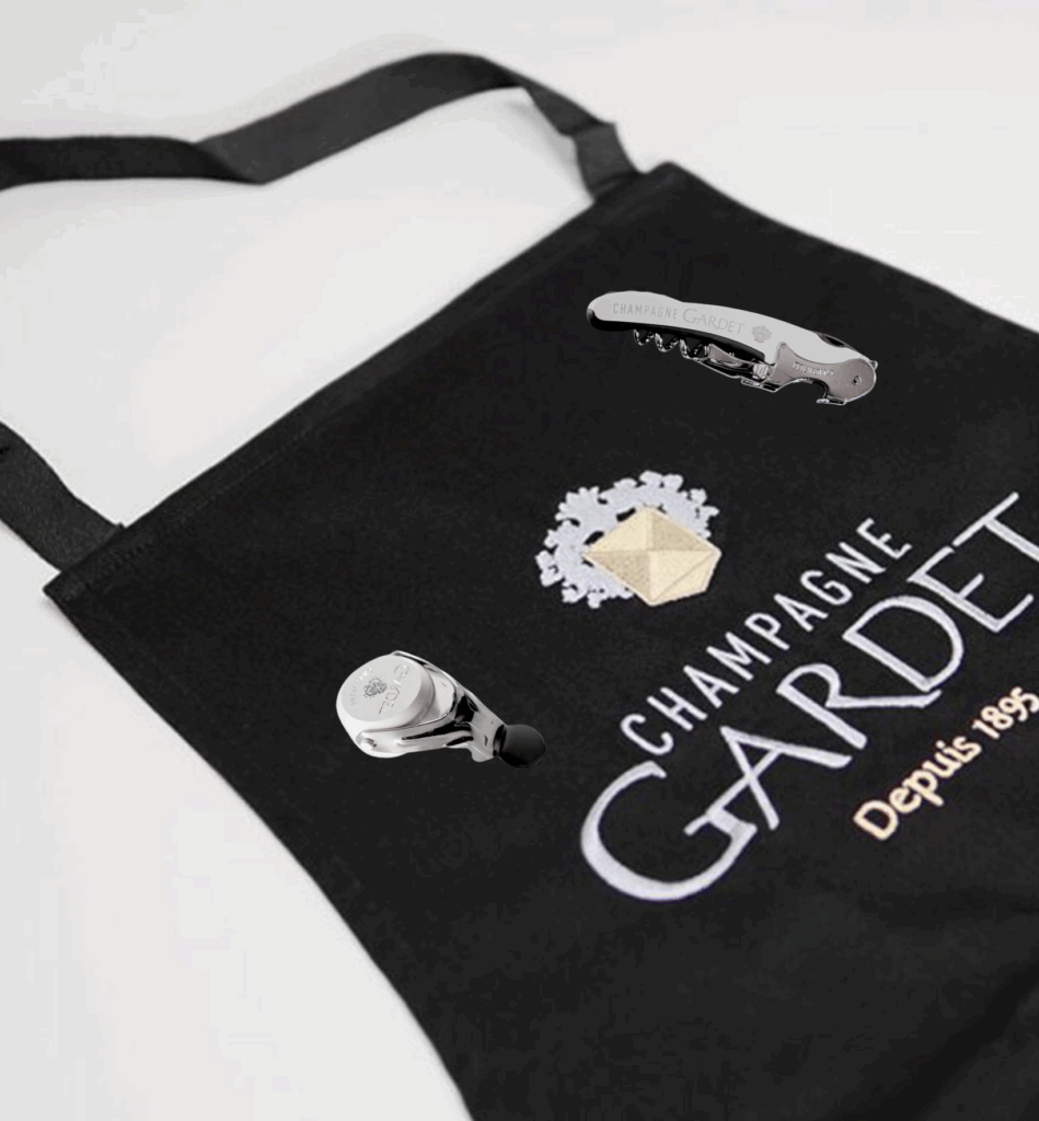 Le tablier de sommelier brodé Gardet : 100 % coton, ajustable et confortable, il apporte style et sérieux lors du service.